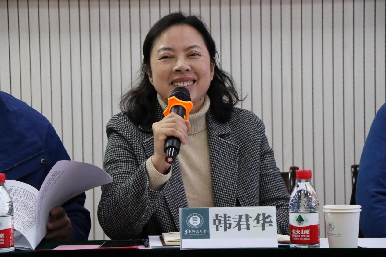 原琼台师范学院副校长、现华中师范大学党委学生工作部(人武部)部长韩君华老师简单介绍了《邢福义文集》的出版经过,认为《张耀灿文集》可以借鉴《邢福义文集》的编辑思路,以理论逻辑加时间顺序的方式整理文集。并建议文集收纳张老师的讲座、报告等的讲义和课件,以呈现张老师可亲、可敬、可爱的形象。