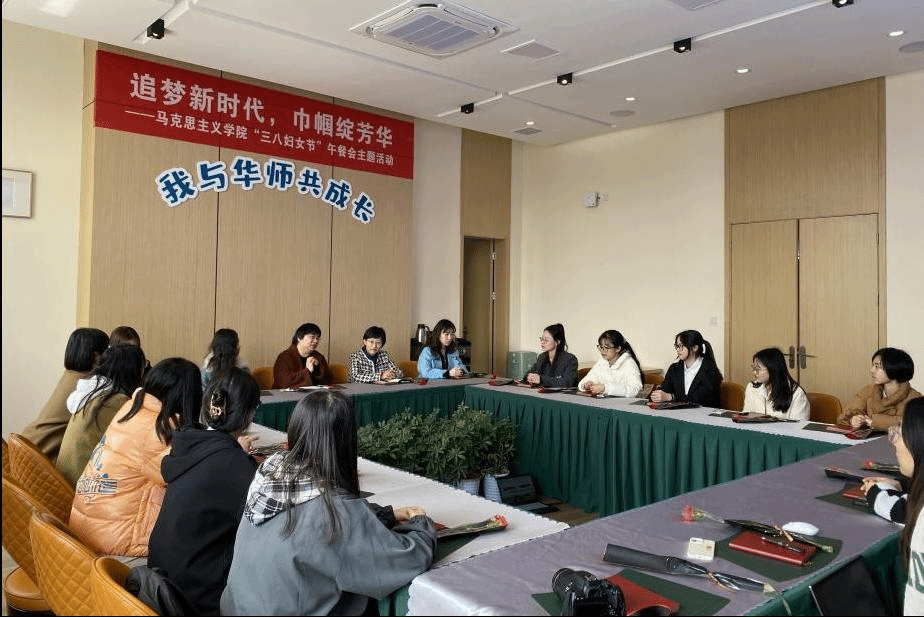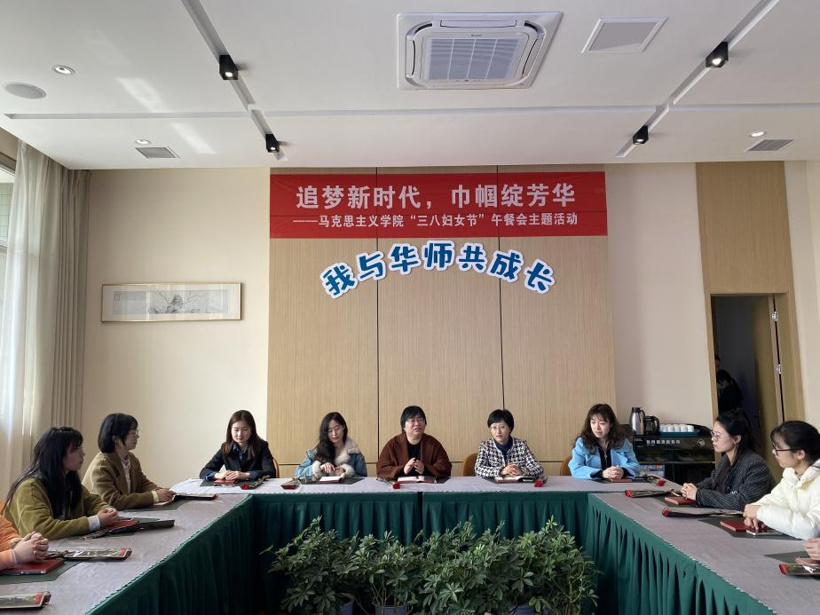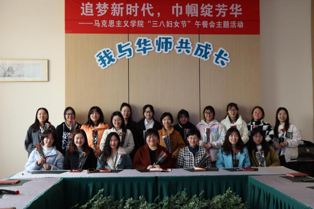 马克思主义学院讯(通讯员 李锐欣 席雨欣;摄影 马碟)3月8日中午,马克思主义学院“追梦新时代,巾帼绽芳华”三八妇女节师生午餐会主题活动在桂香园餐厅顺利举办。马克思主义学院党委副书记邵莉莉,校团委(兼职)副书记、学院副教授薛惠,学院辅导员及各年级学生、少数民族学生、团委学生会、融媒体中心的女性代表餐叙交流,畅谈心声。活动由学院团委书记、研究生辅导员李欣主持。