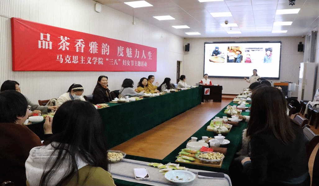 马克思主义学院讯(通讯员 黄楚宇;摄影 邹 涛)中国茶文化历史悠久,一滴清香传承至今。2024年3月8日下午,“品茶香雅韵,度魅力人生”马克思主义学院“三八”妇女节主题活动在1号楼三楼报告厅举行。马克思主义学院近30位女教工共同参与本次活动,活动由工会主席周莉莉主持。
