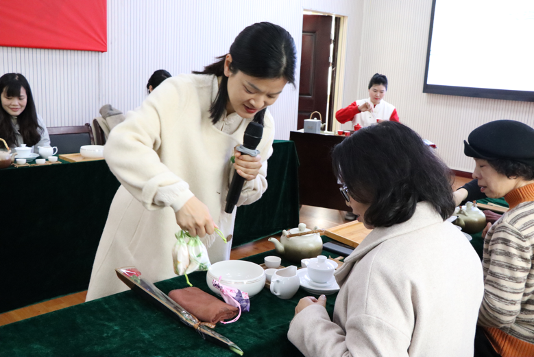 随后,由国家二级茶艺技师、高级品茶员胡媛媛老师为大家介绍中华茶文化,带领女教工们寻茶之香,悟茶之道。老师从中国茶文化的渊源、六大茶类、茶艺器具和科学饮茶等几个方面,传授了茶礼仪、茶与健康、茶与养生等茶艺的基本知识。老师用深入浅出的方式,把茶与生活相结合,把茶与人生相联系,让大家了解到博大精深的中华茶文化和鉴茶品茶专业知识。