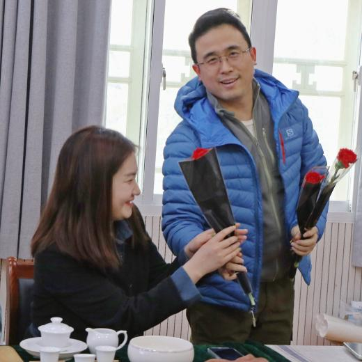 活动伊始,院工会宣传委员熊富标老师和青工委员陈吉胜老师代表学院向参加活动的女教工献花,同时送上了由院党委书记、院长亲笔签名的节日贺卡以及院工会精心准备的礼物,传递了院领导的祝福问候以及学院的温暖和关怀。