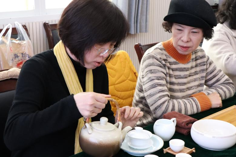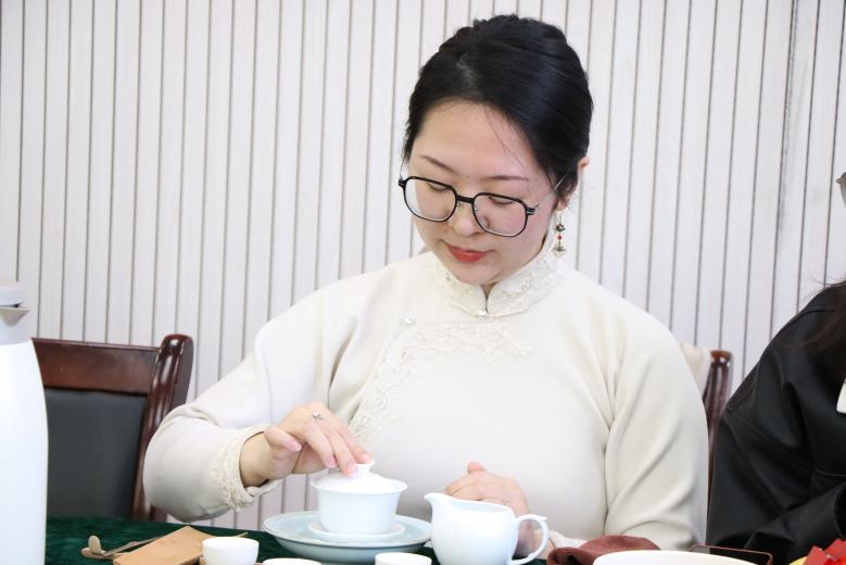 理论讲解之后,大家跟随茶艺师的步骤进行泡茶,通过亲手冲泡,体会水温、茶水比、浸泡时间的冲泡三要素。茶艺师以生动的讲解和优雅的表演向女教工们展示赏茶、闻茶、沏茶、品茶等茶艺技能。大家兴趣盎然,专注聆听,认真跟学,温杯、置茶、冲泡、润茶、出汤,自己动手沏出一壶好茶。活动现场茶香阵阵,琴声悠悠,满室馨香,大家在茶道中感悟中国传统文化的博大精深。在欢声笑语和端庄优雅的茶艺学习中品茶香、识茶趣,感受茶艺的优美和茶文化的魅力。