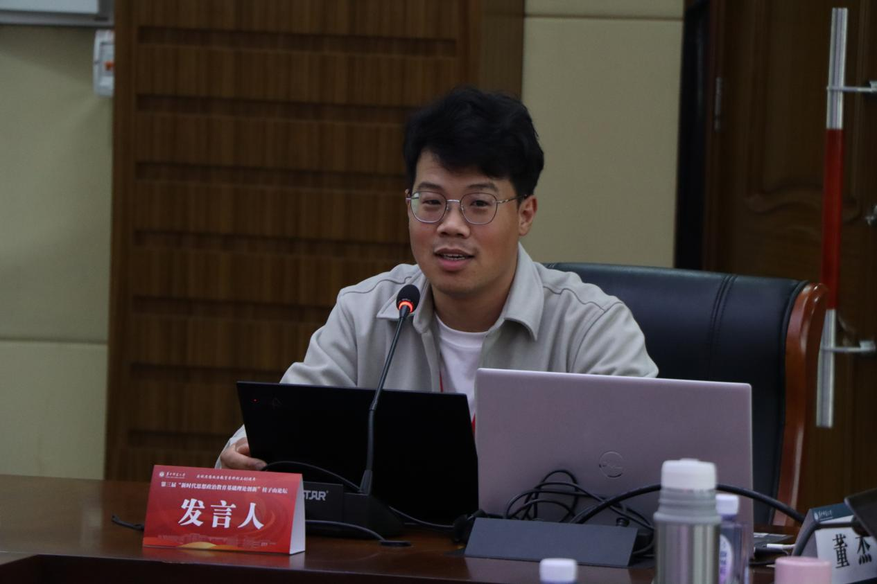 论坛上半场,郗厚军作题为《习近平关于做学生为学、为事、为人的大先生论述的时代意蕴》的论文报告,深入剖析了习近平关于“做学生为学、为事、为人的大先生”的论述,并对教师如何“为师”的核心命题进行了强调与渲染;秦明以《论习近平文化思想的原创性贡献》为题,从坚持文化自信等四个方面系统阐述了习近平文化思想中所蕴含的原创性贡献;宁倩则从《习近平文化思想涵育大学生文化自信的路径探赜》这一主题出发,从习近平文化思想涵育大学生文化自信的三维逻辑、任务使命与创新路径三方面论述了二者之间的具体内容与内在联系。