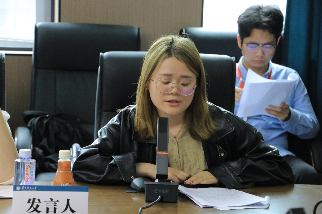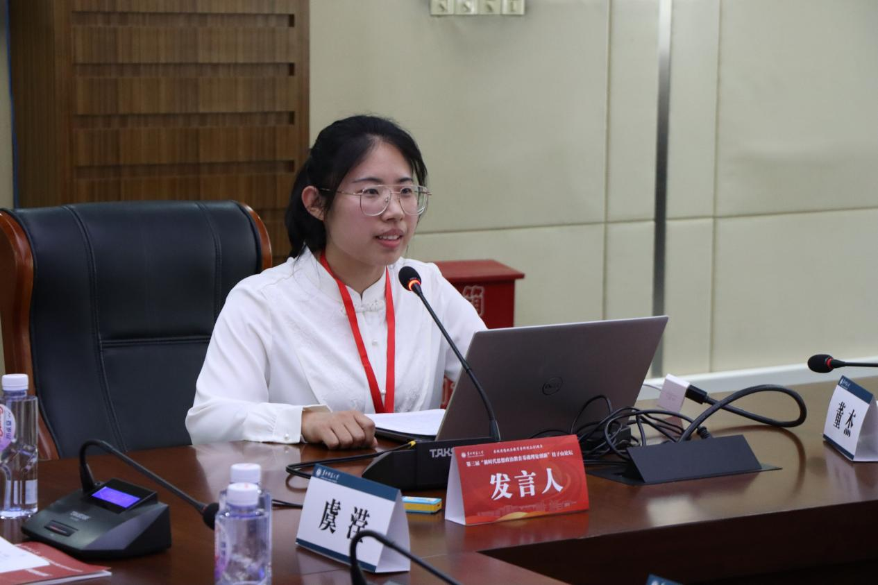 华中师范大学刘亭蔓围绕《论思想解惑》主题发言。她从选题意义出发,站在思想政治工作的立场上解疑“释惑”的基本工作和工作理念,探讨思想解惑的重要意义。发言围绕思想解惑的界定、抒发困惑解惑的主体以及解惑双方双向互动的机制展开,提出了解决知行矛盾、促进思想解惑的重要意义。她提出了个人对于内需外推的机制的思考,探究个体思想的形成发展过程中“解惑”的重要作用。