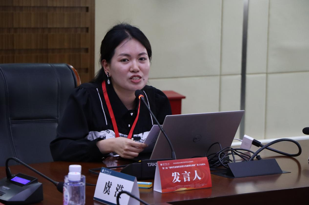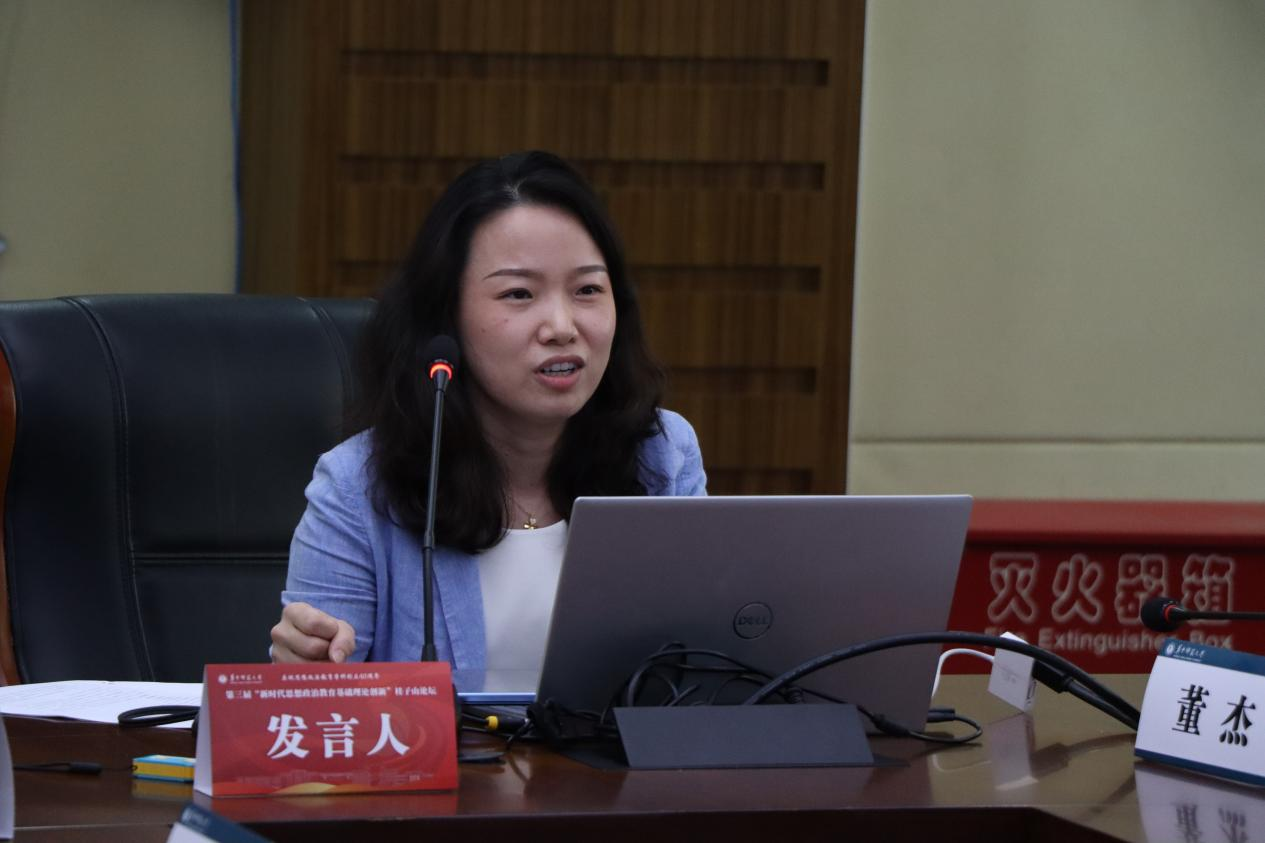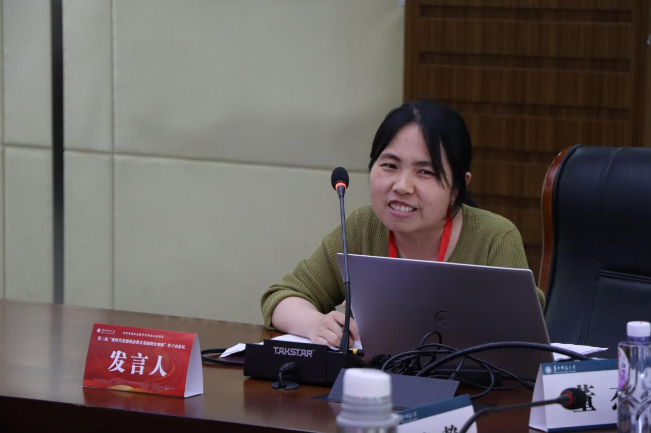 江汉大学王荣围绕《信息技术助推个性化思想政治教育方法创新》发言。她注意到信息技术和思想政治教育的结合的可能性,提出了将互联网大数据的新技术注入动能的思考,通过媒体的迭代促进教育对象的自由发展和个性化发展。推动个性化实施方法的转变,并将其落实到具体的教学实践,强化数据分析,实现从结果关注向过程追踪的过程。