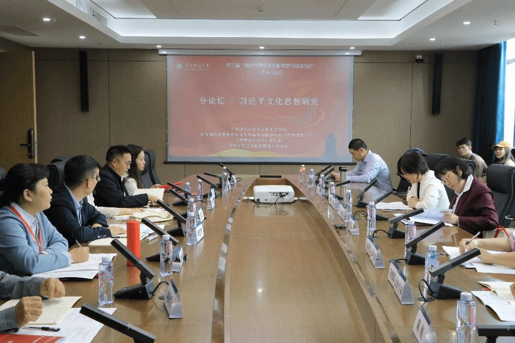 4月20日下午,以“习近平文化思想研究”为主题的分论坛在华中师范大学新文科楼4楼4号会议室举行,《思想理论教育导刊》编辑部主任鲍莉炜、《贵州师范大学学报(社会科学版)》编审杨中启担任分论坛主持人。