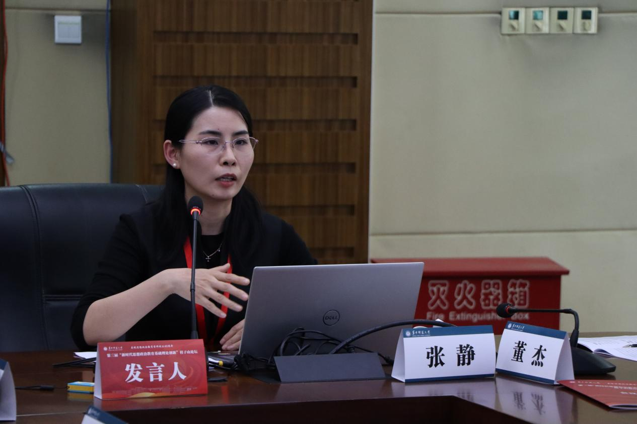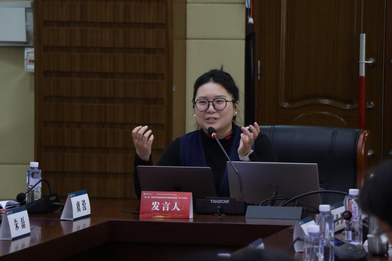北京航空航天大学张静围绕《生成式人工智能驱动高校思政课教学变革的价值、挑战与举措》主题发言。她从自己从事的数据教育案例出发,介绍了教育部在这方面的安排部署,强调生成式人工智能在高等教育中的重要性和当下的成果,在教学供给侧改革等方面也发挥出重要的作用。同时,生成式人工智能也对原本的教育教学产生了一些挑战,这是未来要着重关注的方面。