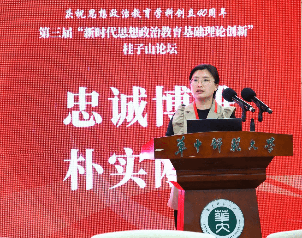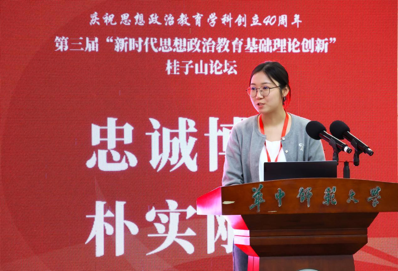 华中师范大学博士生胡锐作了《学科创立四十年来思想政治教育矛盾研究的历程、特征与展望》的报告,她认为自1984年思想政治教育学科创立以来,围绕思想政治教育矛盾的研究经历了初步构建、理论规范、逐步深化和创新发展四个阶段。新时代,思想政治教育矛盾研究需要实现从多重性分析到结构性构造、从抽象性分析到现实性对照、从适应性分析到超越性揭示等的视角转向。