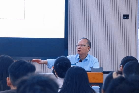 王树荫教授指出在做论文时要关注“经验列举合并同类项”、“观点与标题繁简优劣”、“定性定位关键词考量”。王树荫教授与同学们分享了自己的学术研究趣事,在幽默的话语和生动的比喻中阐述做文章的方法。王树荫教授指出通过“转抽屉”的方法对史料与文本进行学习,综合与分析相结合,遣词用句的繁简优劣要以内容为衡量指标,形式服从内容,定位词的考量要慎重。王树荫教授地分析深入浅出,与同学们的研究生生活紧密相关,内容详实、共鸣性高,现场气氛热烈,掌声连连。