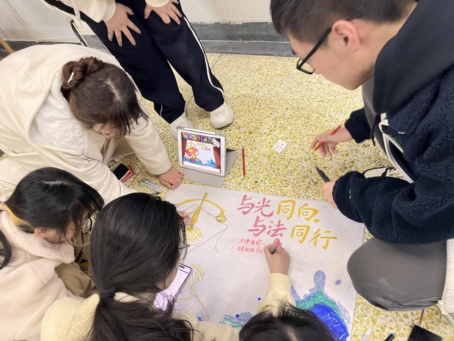 “道德还是法律能在当代社会发挥更大作用”,这是一个极富挑战性也具很强前沿性的问题。为了重点剖析该问题,薛惠老师将课堂小组划分为不同阵营进行研讨。各小组成员紧密合作,集思广益,共同探讨道德与法律在当代社会的角色与影响。经过激烈的研讨和深入的思考,各小组纷纷以独特的视角进行观点对垒,并在现场制作出一幅幅充满创意与活力的海报。每一幅海报都是小组成员们智慧与心血的结晶,他们通过创意设计将法学理念融入其中,展现了法学的独特魅力与价值。此次活动不仅提升了团队协作能力,更在研讨和制作海报的过程中加深了对法学知识的理解与运用,让学生们更深刻地认识到了德治与法治作用机制的互补性。