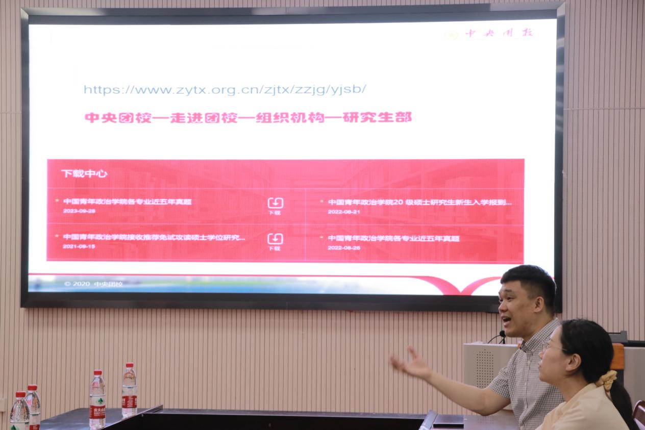 马克思主义学院讯(通讯员 张魏彤;摄影 邹涛)5月30日,中国青年政治学院在马克思主义学院一号楼三楼学术报告厅进行招生宣讲。本次宣讲由“求真”学习发展中心曹娜主持。