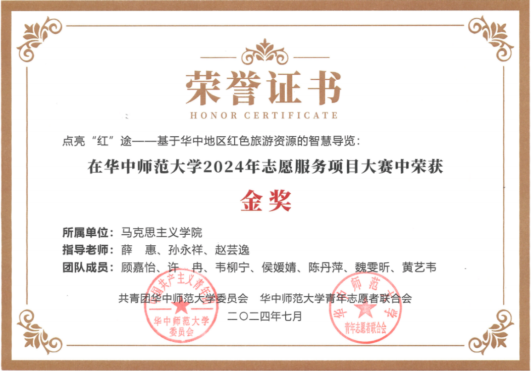 团队开展“点亮红途——基于华中地区红色旅游资源的智慧导览”公益创业项目,以开发一个小程序、组织一系列志愿服务与宣讲、参与国家社科基金重大项目、制作一系列红色宣传视频,以数字赋能和中外宣传交流融合的方式,生动展现红色文化的魅力与力量。