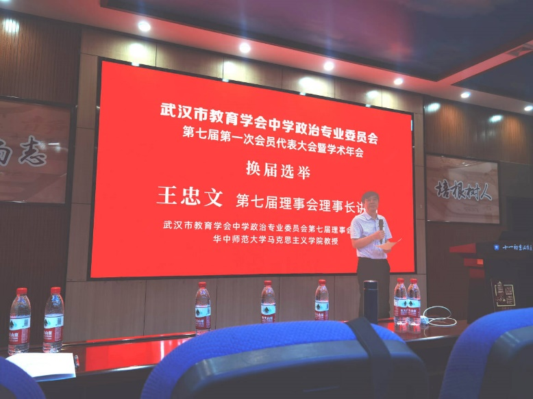 此次大会采用举手表决的方式,审议通过了武汉市教育学会第七届理事会成员建议名单,武汉市教育学会中学政治专业委员会章程,选举出了以华中师范大学马克思主义学院王忠文教授为理事长的新一届理事会。