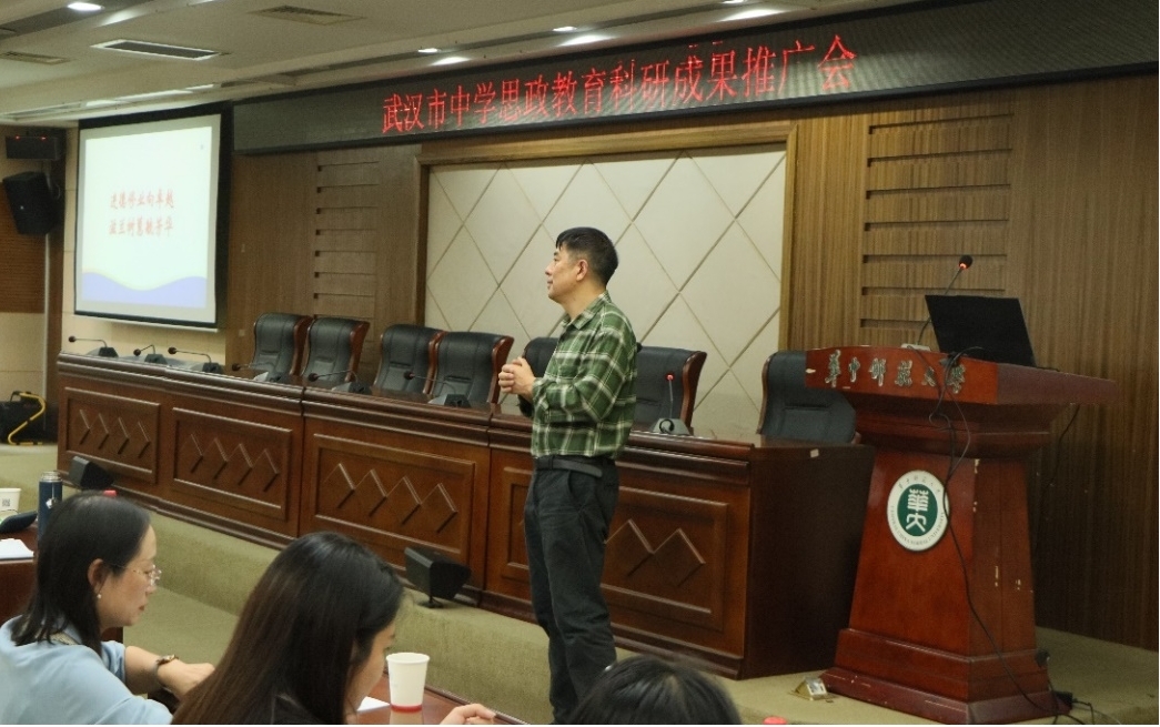 马克思主义学院讯(通讯员 任玉佳 蒋林杉;摄影 侯筱麒)为落实习近平总书记关于大中小思政教育一体化建设系列讲话精神,解决大学生见习机会不多、中学教师科研难等问题,2024年10月9日下午,武汉市教育学会中学政治专业委员会科研成果推广及交流会在华中师范大学举行。这是该会换届后的第一次活动。活动由国家级人才项目入选者、华中师范大学马克思主义学院教授、武汉市教育学会中学政治专业委员会理事长王忠文主持,秘书长、武汉市教科院初中道法教研员范莉,部分理事及全市各区代表,华中师范大学马克思主义学院2022级师范生等共150余人参加本次活动。