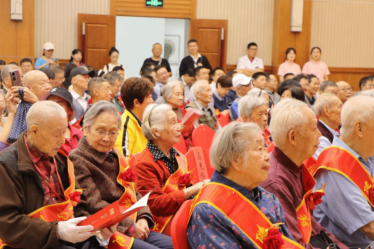 马克思主义学院讯(通讯员 邓小晗;摄影 胡西努尔)九九重阳,爱满人间。10月11日,我校在科学会堂举行了2024年老人集体祝寿活动,欢声笑语中,来自全校各部门和各学院的135位年满70、80、90岁的老寿星、老同志们欢聚一堂,共同庆祝属于他们的节日。学校全体校领导出席祝寿大会。马克思主义学院范先义、冯涛两位寿星受邀参加本次活动,马克思主义学院党委书记孙永祥、学院退休党支部书记魏启华、学院老协分会会长余四川、学院党政办主任季志勇等陪同老教师们一起参加集体祝寿活动。