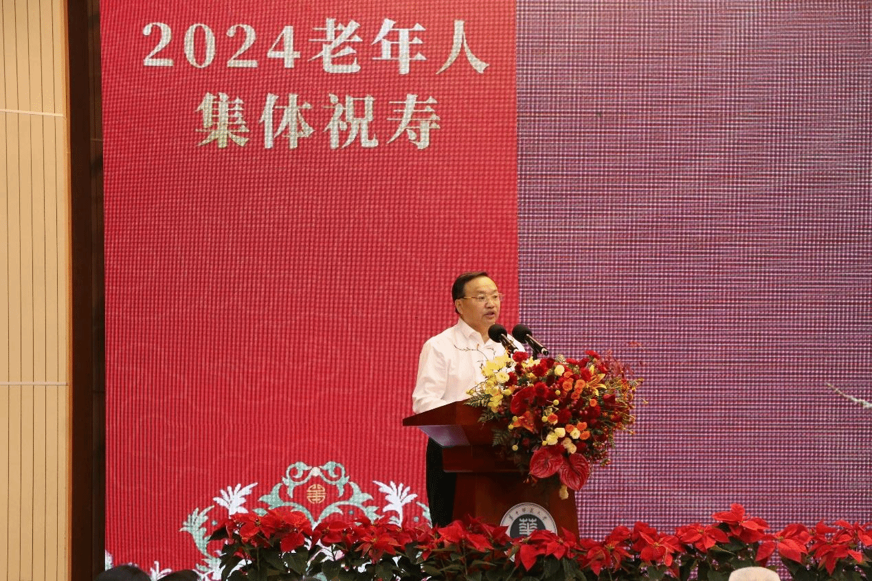 首先,校党委书记夏立新书记致辞。他代表学校党委、行政向老寿星们致以诚挚的祝福,并表示:敬老、尊老、爱老是重阳节最重要的文化内容,也是中华民族源远流长的优良传统,“学校党委高度重视退休工作,认真贯彻落实党中央和教育部决策部署,把积极老年观、健康老龄化的理念融入到日常工作中,着力构建党委领导下部门联动的帮扶养老机制,拓展老有所学的新阵地,搭建老有所为的新平台,彰显老有所养的新作为。”