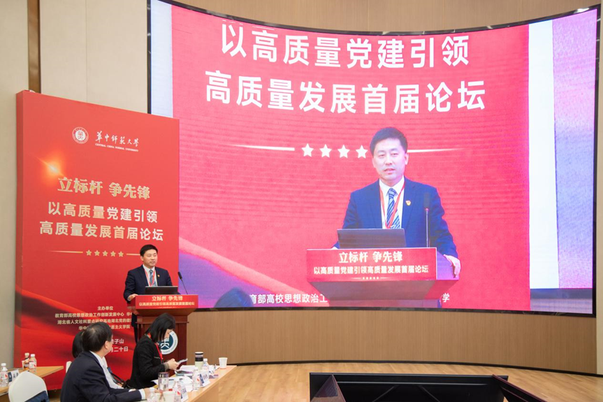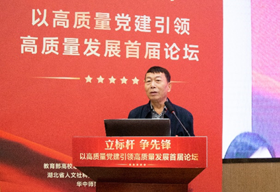 马克思主义学院讯(通讯员 易泽元;摄影 陈希昌 季煜坤 唐艺榕)10月20日,“立标杆 争先锋 以高质量党建引领高质量发展首届论坛”在华中师范大学隆重举行。来自全国近40家高校、企业、行业组织的近百名党建研究专家、基层党委负责人、基层党支部负责人以及党建专业研究生等汇聚一堂,就“以高质量党建引领高质量发展”这一主题进行了深入交流与研讨。