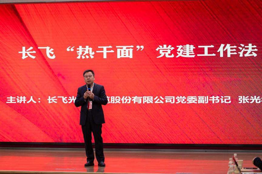 长飞光纤光缆股份有限公司党委常务副书记张光华以“长飞‘热干面’党建工作法”为主题,介绍了企业特色“热干面”党建工作法,即热爱中国共产党、热爱祖国、热爱企业;干好党建、干好业务、干出成效;面向战略、面向文化、面向品牌,切实推动党建工作提质增效。