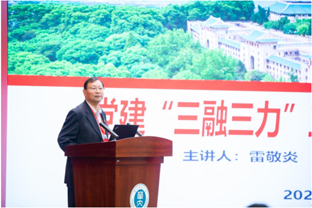 全国党建工作标杆院系、武汉大学遥感信息工程学院党委书记雷敬炎以“党建‘三融三力’工作法引领一流学科建设”为主题,介绍了学院“党建三融三力工作法”,“融”汇思想,提升政治引领力;“融”聚力量,提升组织凝聚力;“融”于使命,提升党建贡献力等经验做法。