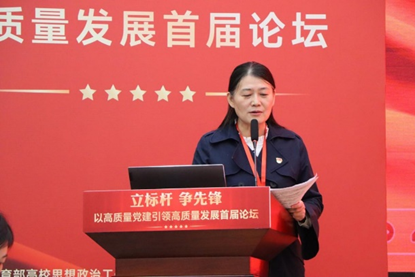 江汉大学马克思主义学院党委书记吕洪雁以“党建引领学院高质量发展”为主题,分享了学院抓好理论宣讲工作等,以高质量党建引领高质量发展的具体经验与思考。
