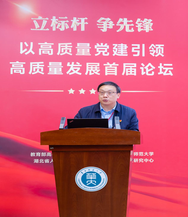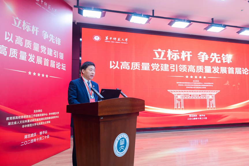 华中师范大学党委常委、副校长刘宏达作开幕式致辞。他代表学校对参与本次活动的各位嘉宾表示了热烈欢迎与衷心感谢,并向与会人员介绍了华中师范大学发展历程,回顾了学校近年来党建工作成绩和主要举措。他号召与会专家群策群力,为推进新时代党建工作高质量发展而共同努力。