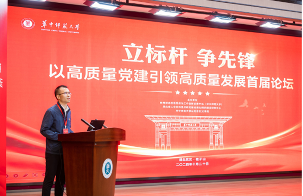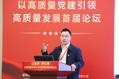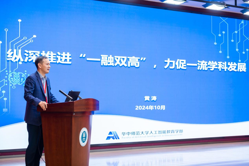 全国党建工作标杆院系、华中师范大学人工智能教育学部党委书记黄涛以“纵深推进‘一融双高’,力促一流学科发展”为主题,从“坚持立德树人”等四个方面介绍了学院推进“一融双高”工作的具体举措,指出要以高质量党建引领一流学科建设。