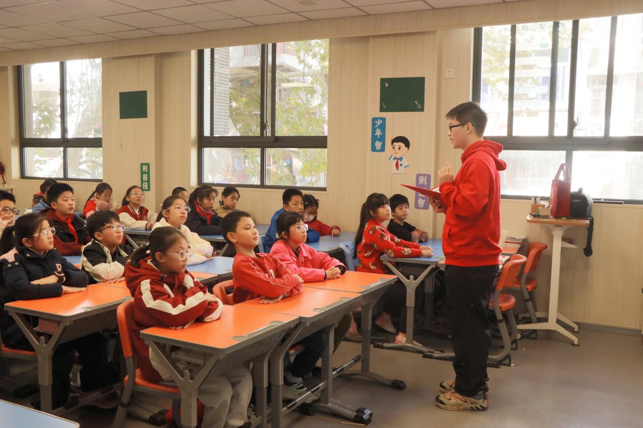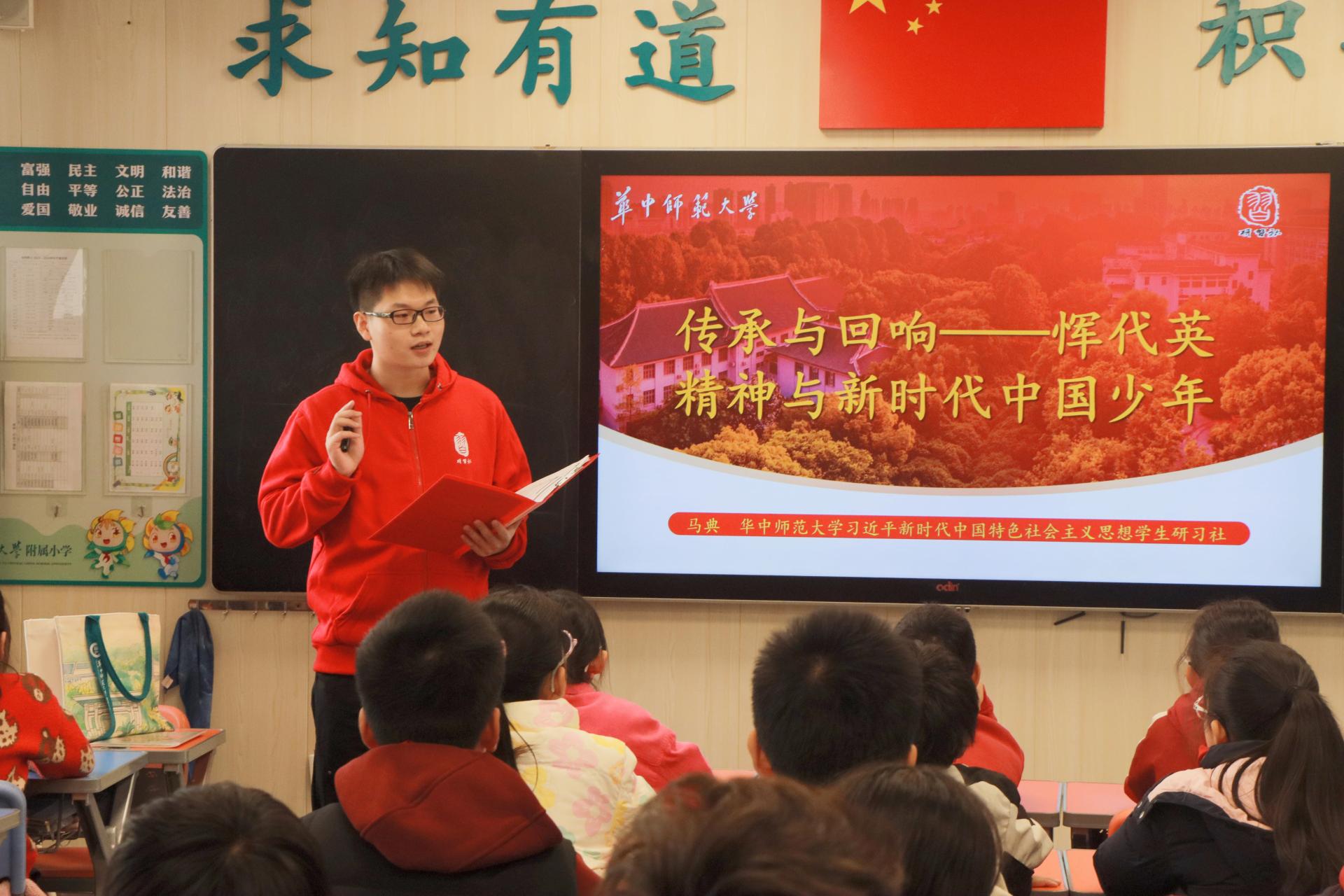 马克思主义学院讯(通讯员 侯筱麒 苏婧伊)11月27日上午,华中师范大学习近平新时代中国特色社会主义思想学生研习社(以下简称“研习社”)的社员们走进华师附小,为师生们带来了一场以恽代英光辉事迹为主题的精彩宣讲活动。此次活动旨在让恽代英的崇高精神在青少年心中生根发芽,激励他们成长为有理想、有担当的新时代好少年。