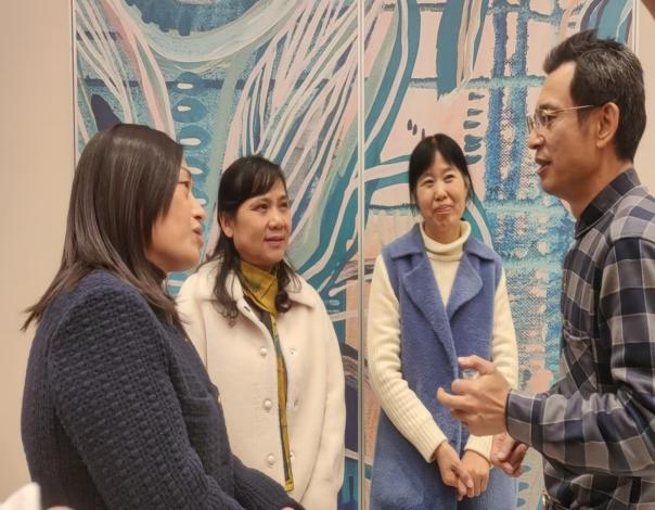 座谈会最后,1994级校友代表向各位恩师献花。随后,与会师生来到文科科研楼门口进行合影留念,用镜头记录下相聚的珍贵瞬间,并赴学校校史馆参观。