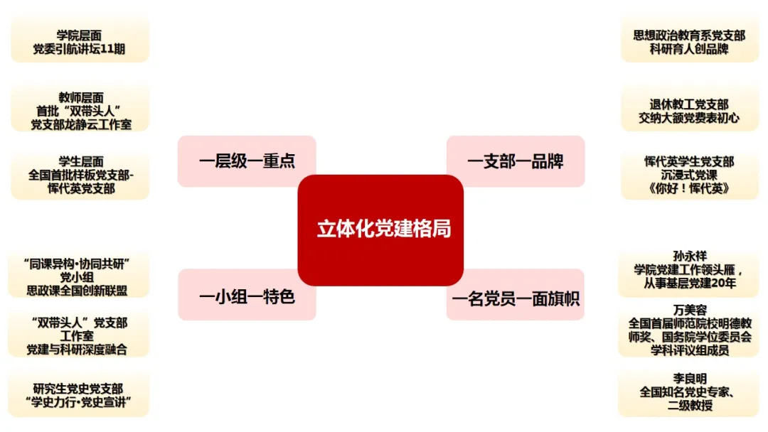 立足党建与学院发展深度融合,着力打造“一层级一重点、一支部一品牌、一小组一特色、一名党员一面旗帜”立体化党建格局。