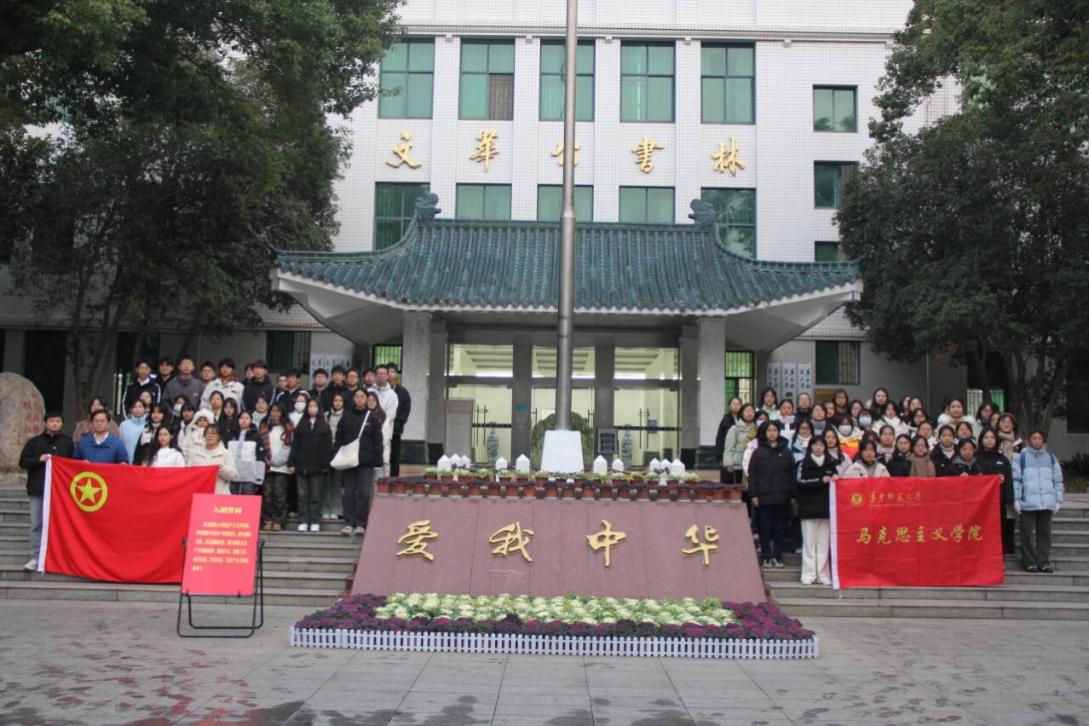 活动终章,全体师生合影留念,铭刻着庄重难忘的清晨,也储存了马院师生又一共同的记忆。