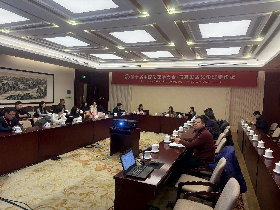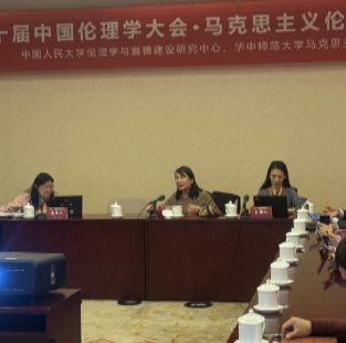 会议期间,华中师范大学马克思主义学院、中国人民大学伦理学与道德建设研究中心联合主办马克思主义伦理学论坛。论坛由中国伦理学会副会长龙静云教授和中国人民大学张霄教授担任召集人,我院殷筱教授、华中科技大学李建国教授分别担任论坛上下半场主持人,武汉大学陈江进教授、武汉理工大学程宏燕教授担任点评人。共有来自清华大学等30余名高校教师、博士生参与此次论坛。