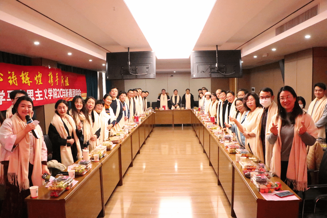 马克思主义学院讯(通讯员 陈奕凝;摄影 刘灏然)1月9日下午,马克思主义学院2025年“同心铸辉煌 携手启新程”新春团拜会于文科科研楼北楼410会议室举办。学院党政联席会议成员、党委会成员、各议事机构成员以及近两年新进教师、即将荣休教师等四十多位教师参加了此次团拜会。大家欢聚一堂,在精彩的节目和游戏中一起展望新的征程,感受新春的喜悦。活动由刘梦觉副教授主持。