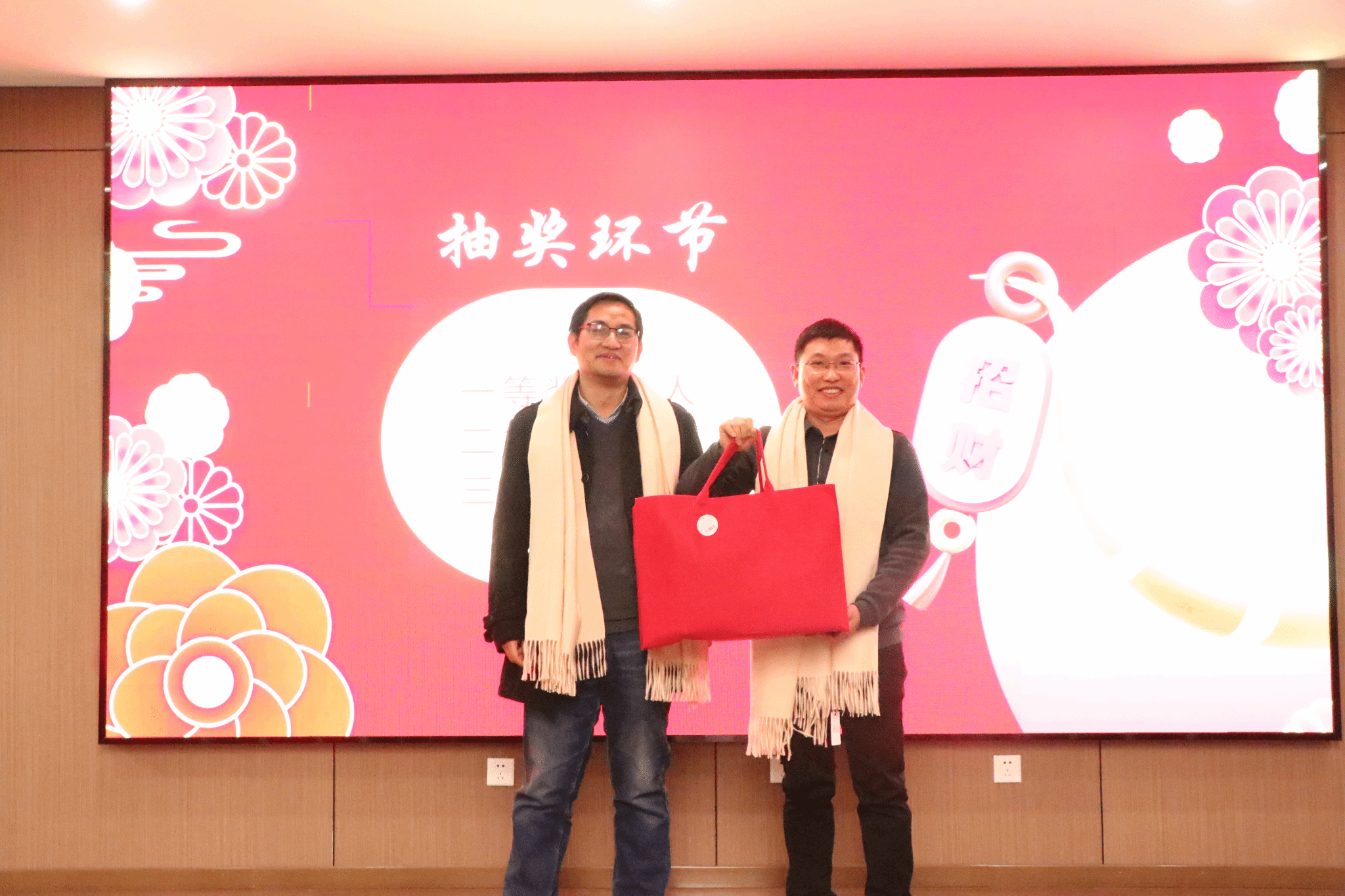 激动人心的抽奖环节将团拜会推向了高潮,幸运中奖的老师们脸上都洋溢着幸福的笑容,带着由衷的喜悦进行合影留念。