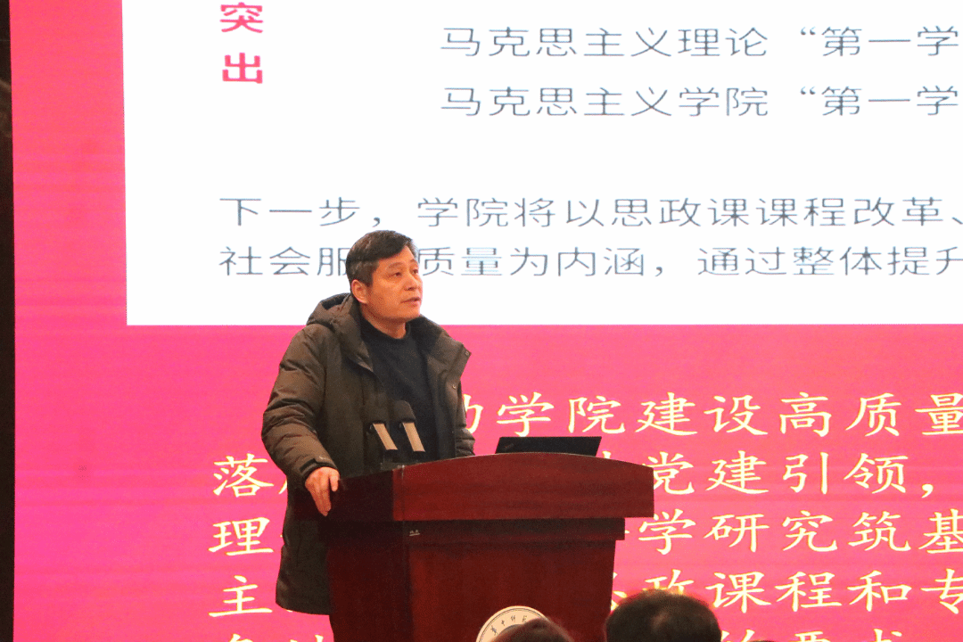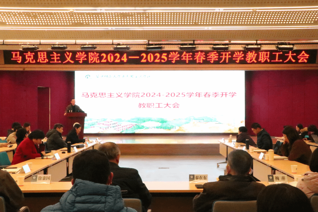 马克思主义学院院长毛华兵作了“2025年学院工作思路与举措”的主题报告。他指出,学院将以思政课课程改革、马克思主义理论学科建设、队伍量质并举、专业人才发展、社会服务质量提升为内涵,通过整体提升计划,实现“集成创新”,并就新学期推进学院学科建设、思政课建设、本硕博一体化人才培养、教师队伍建设、社会服务等方面提出了系列工作思路,并就有关工作进行了部署。