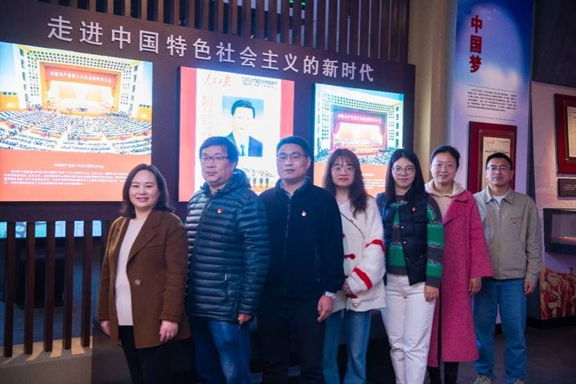 全体师生党员在展馆讲解员的带领下参观《没有共产党就没有新中国——百年报刊展》,感悟中国共产党波澜壮阔的百余年历史征程。百年报刊展分为中国共产党创立初期、大革命时期、土地革命时期、全民抗战时期、全国解放战争时期、社会主义建设时期、改革开放时期及新时代报刊文献等八个部分。运用声光电、多媒体、场景多元体验互动等多种形式,以丰富的报刊文献和多媒体展示。馆内收藏了大量珍贵的报刊历史原件,如陈独秀创办的《新青年》创刊号原件、中国共产党第一份报刊《热血日报》第一期原件等。不同时期众多红色报刊的发展历史,都在诉说着一部中国共产党的恢宏史诗,讴歌中国共产党百余年历史征程和历史辉煌成就。
