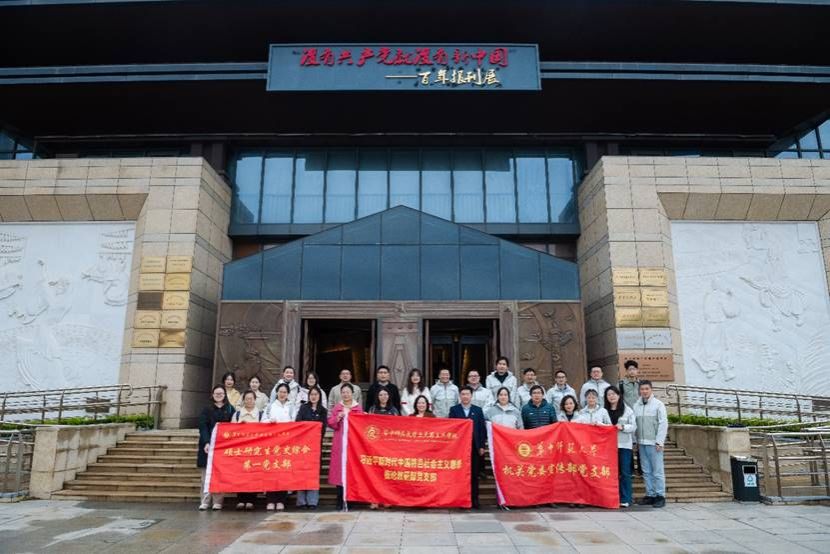马克思主义学院讯(通讯员 李樱 赵子玉; 摄影 陈希昌)3月28日,马克思主义学院习近平新时代中国特色社会主义思想概论教研部党支部、机关党委宣传部党支部、马克思主义学院硕士研究生2023级党史综合党支部赴武汉龙源红色报刊博物馆开展联合主题党日活动,并举行马克思主义学院实践教学基地挂牌仪式。
