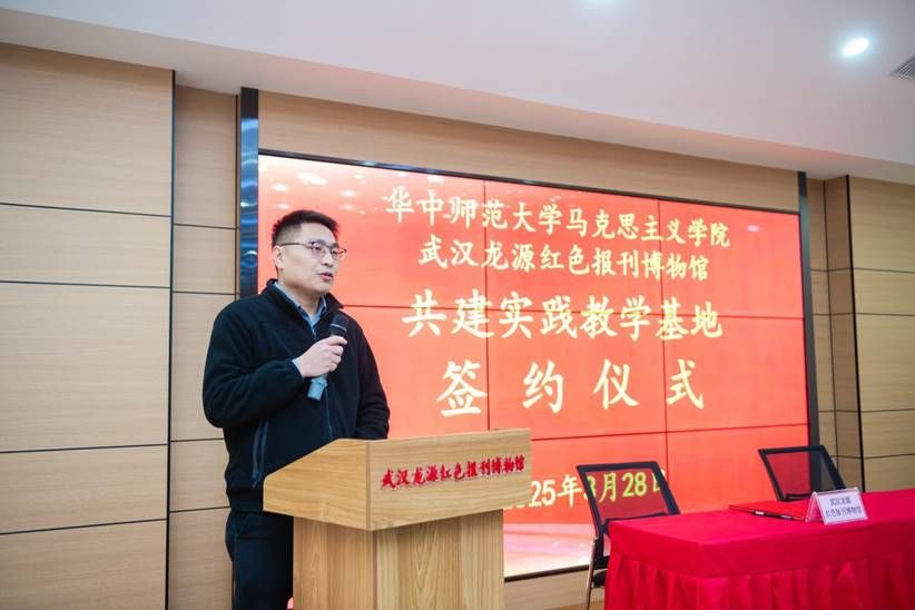 参观结束后,华中师范大学马克思主义学院——武汉龙源红色报刊博物馆共建实践教学基地签约仪式举行。马克思主义学院硕士研究生2023级党史综合党支部书记高源主持仪式。