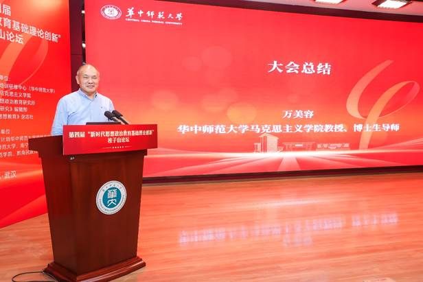 华中师范大学党委常委、副校长刘宏达,湖北长江教育报刊传媒集团有限公司总编辑、《学校党建与思想教育》杂志社社长谢成宇,《思想教育研究》编辑部主任夏欢出席论坛并致辞,马克思主义学院万美容教授作论坛学术总结。马克思主义学院院长毛华兵教授主持开幕式,马克思主义学院党委书记孙永祥主持闭幕式。