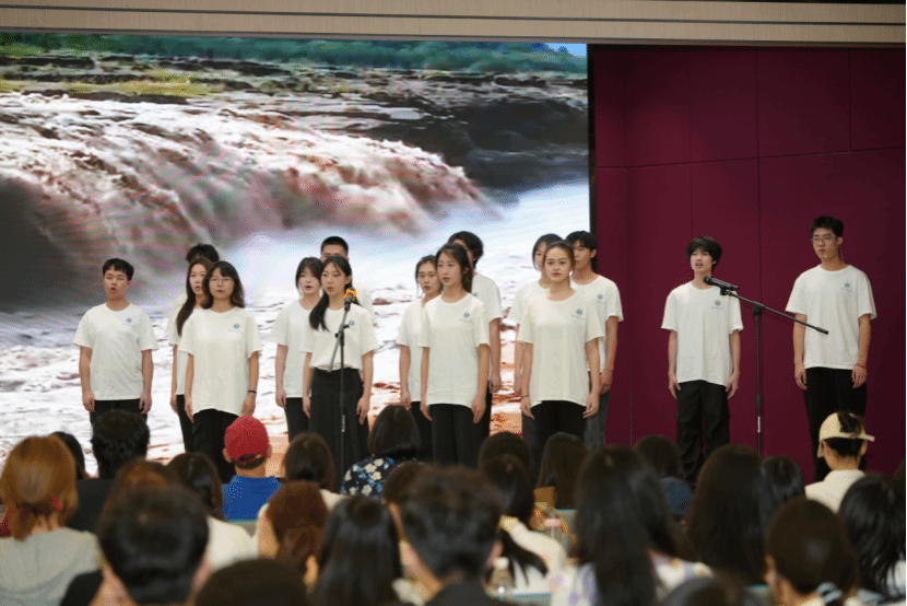 合唱《歌唱祖国》环节,悠扬旋律唱出了中华儿女对祖国的无限热爱,同学们用整齐划一的队形和饱满的精神面貌,生动诠释了那个火红年代的奉献精神与家国情怀,彰显信仰在建设征途中绽放的璀璨光芒。