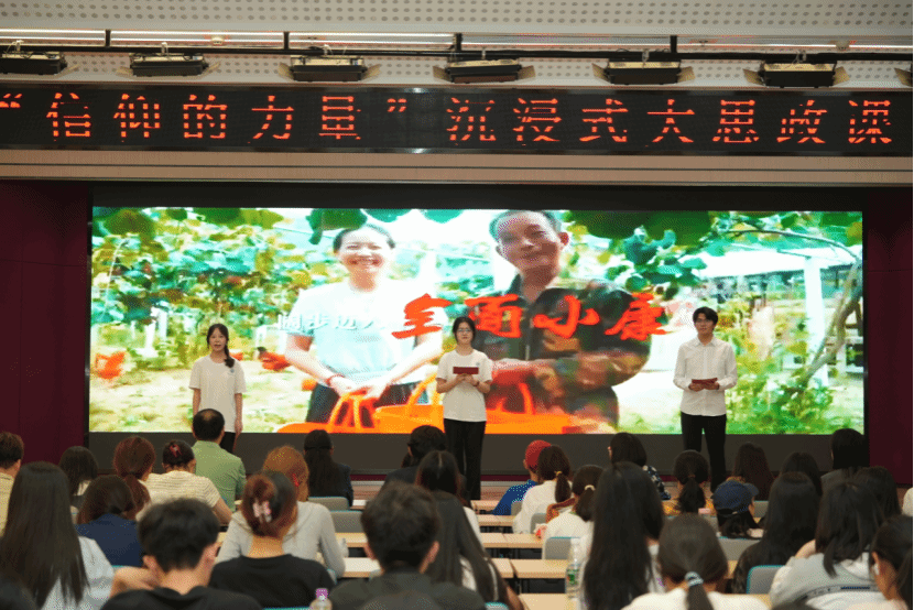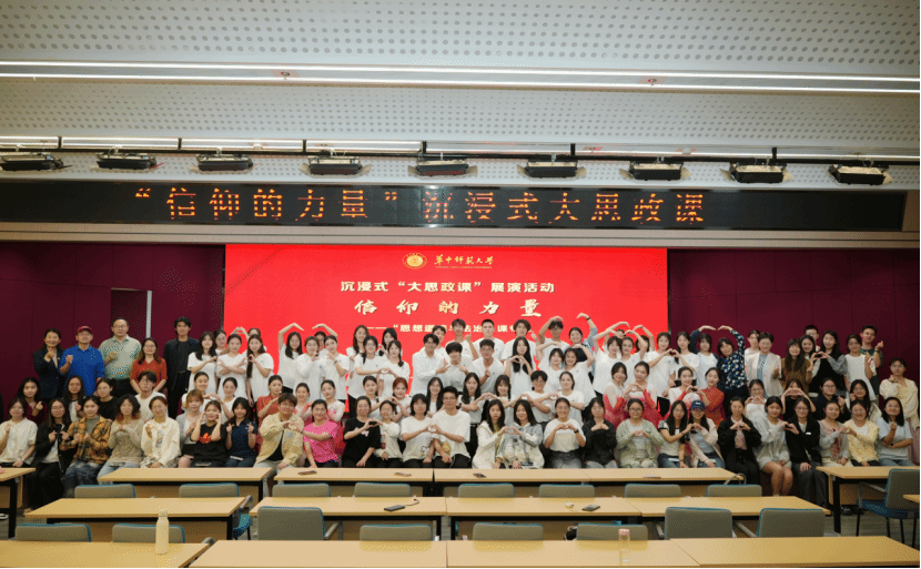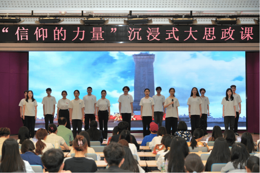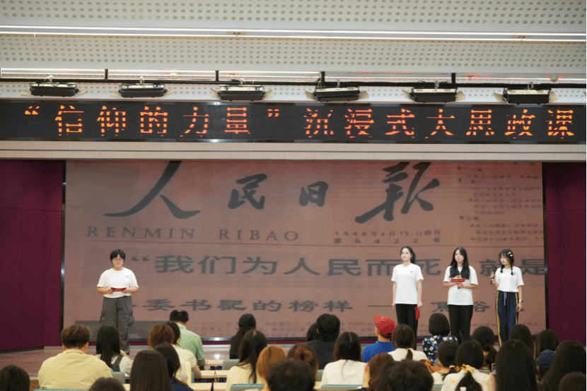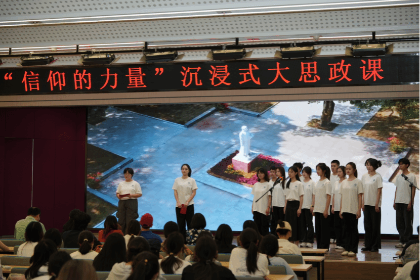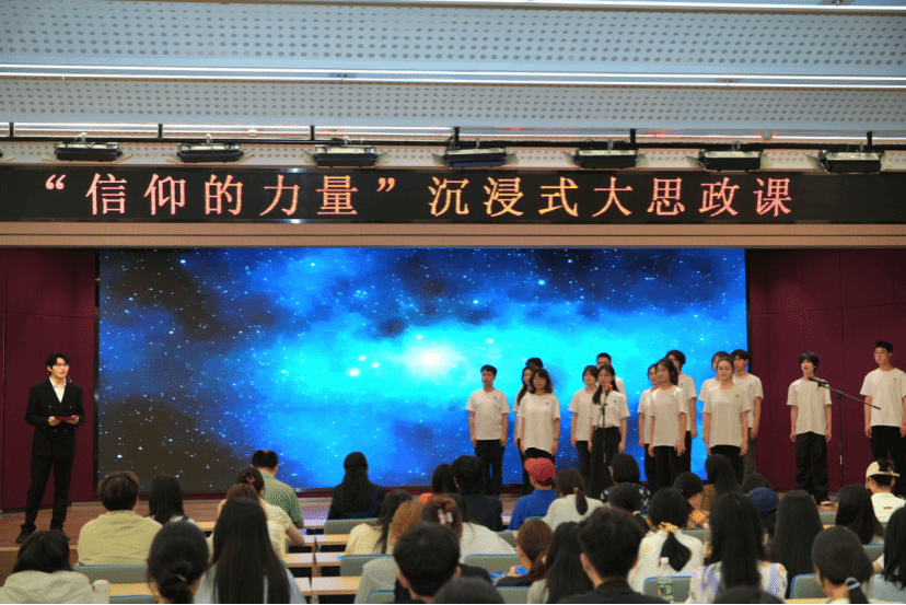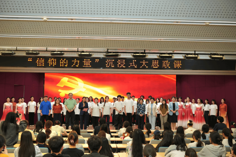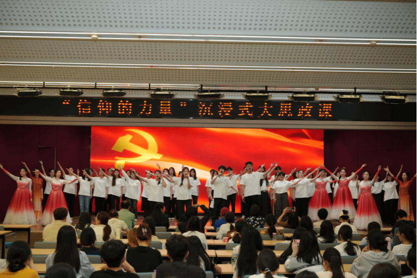 马克思主义学院讯(通讯员 刘楚琦 熊婧钰)为深入贯彻党的二十届三中全会精神,落实新时代学校思政课建设要求,4月23日晚,华中师范大学马克思主义学院思想道德与法治教研部组织的沉浸式大思政课“信仰的力量”展演活动在学校文科科研楼101报告厅举行。此次演出由大学生自导自演,采用朗诵、情景剧、合唱、舞蹈等多样化的艺术形式,将思政课上抽象的理论转化为鲜活的舞台意象,让信仰力量可观可感,生动呈现了中国共产党的奋斗历程与精神力量。