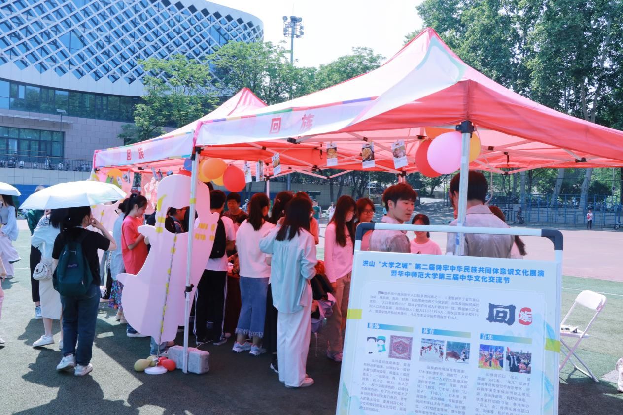 马克思主义学院讯(通讯员 高智俊;摄影 苏婧伊)4月26日,洪山“大学之城”第二届铸牢中华民族共同体意识文化展演暨华中师范大学第三届中华文化交流节在佑铭体育场开幕。马克思主义学院负责的回族展位以“辣到跺脚、舞到心动、礼到尖叫”为关键词,通过美食体验、传统舞蹈、趣味互动等多元形式,生动展现回族饮食文化与民俗艺术的独特魅力,吸引众多师生驻足参与,共赴一场跨越民族的文化盛宴。