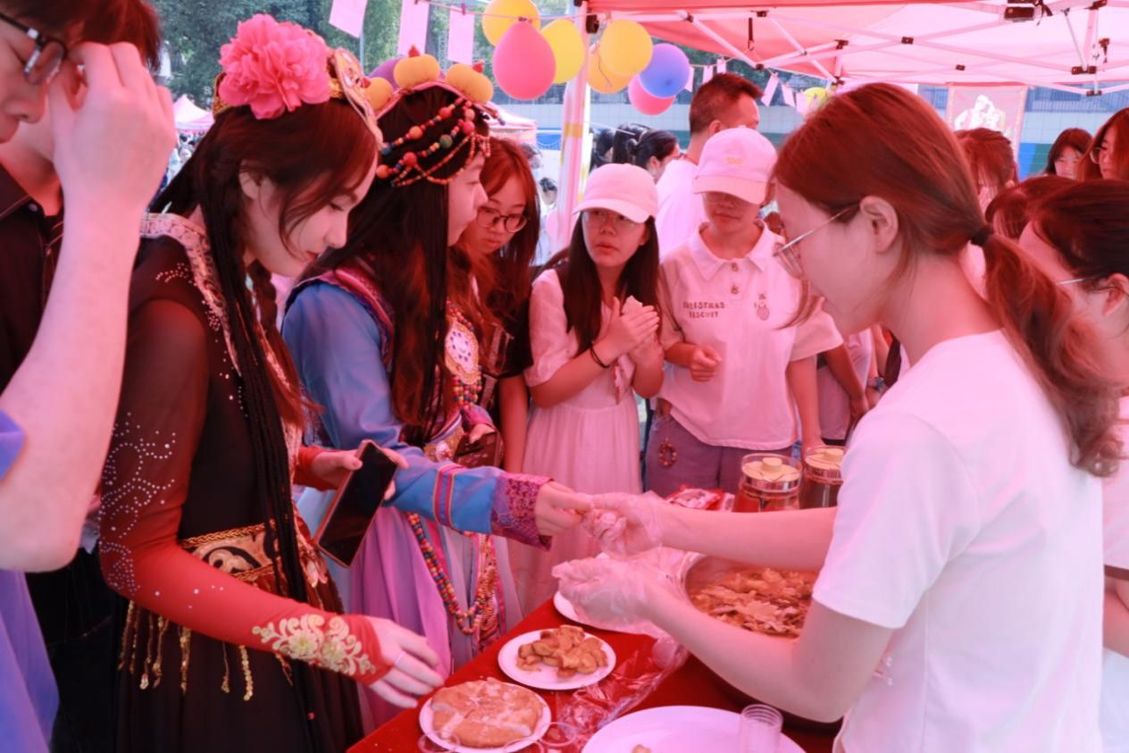 此次回族展位的精彩呈现,既是马克思主义学院落实铸牢中华民族共同体意识教育的实践探索,也为民族文化交流搭建了鲜活平台。当丝路风味邂逅青春活力,当传统习俗碰撞现代创意,一场跨越地域与时空的文化对话由此展开——正如展位宣传语所言:“吃最野的辣,跳最飒的舞”,在味觉与视觉的双重盛宴中,各民族师生共同感受中华文化的多元魅力,携手迈向更紧密的团结与融合,他们灿烂的笑脸,正成为“中华民族一家亲”的生动注脚。