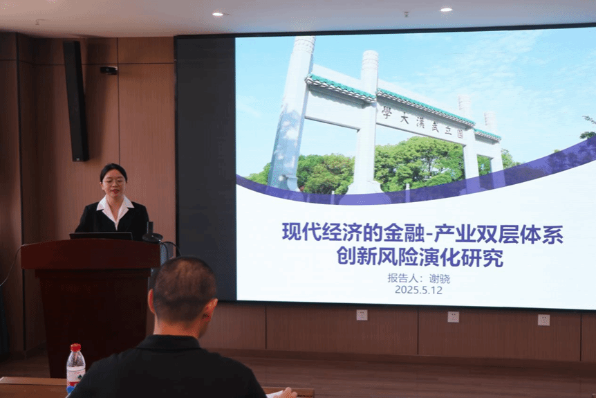来自武汉大学经济与管理学院的谢骁博士以《现代经济的金融—产业双层体系创新风险演化研究》为主题进行学术汇报。