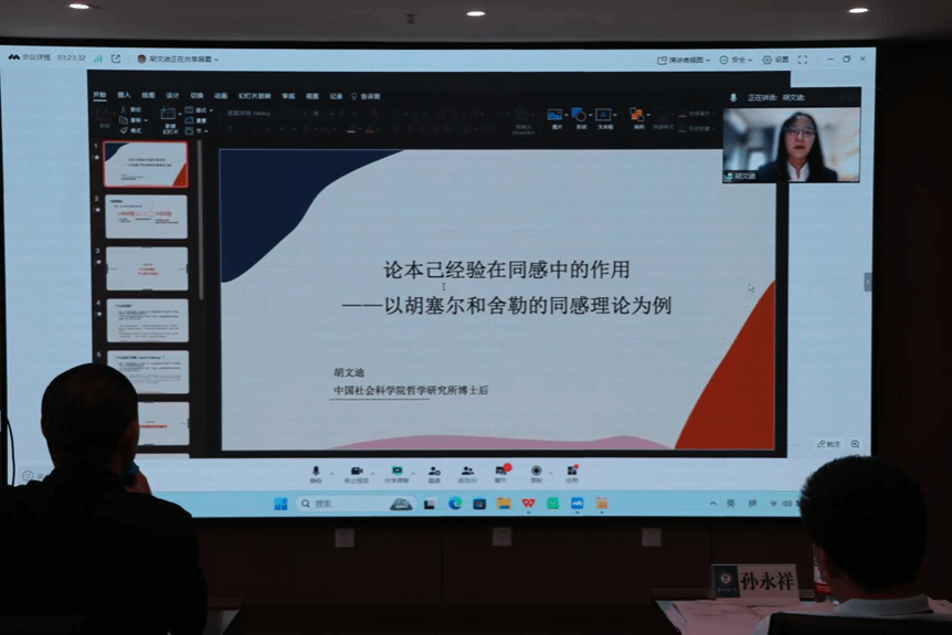来自中山大学的胡文迪博士以《论本己经验在同感中的作用——以胡塞尔和舍勒的同感理论为例》为主题进行学术汇报。