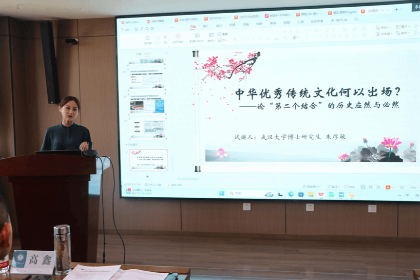 来自武汉大学马克思主义学院的朱厚敏博士以《中华优秀传统文化何以出场?——论“第二个结合”的历史应然与必然》为主题进行学术汇报。