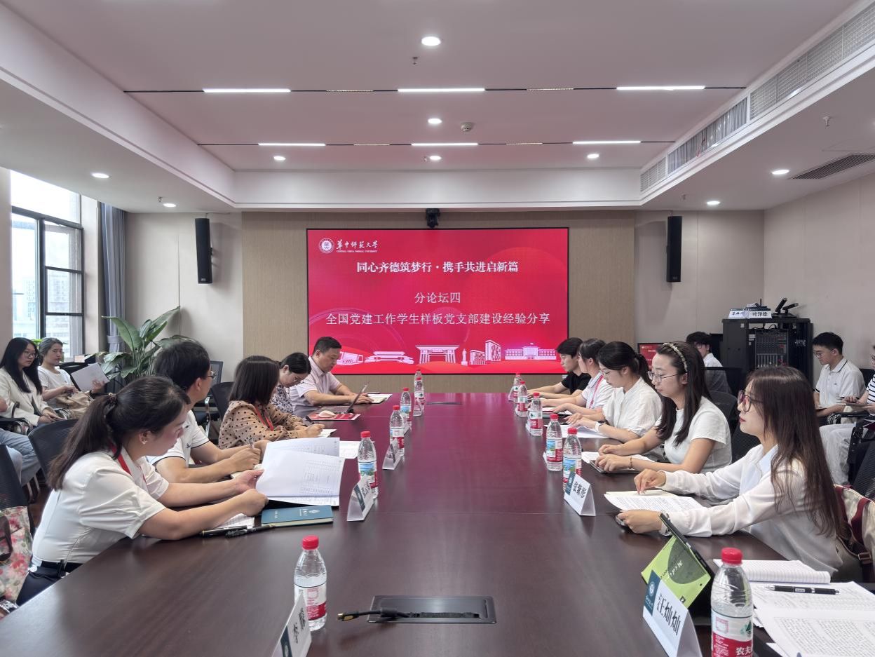 第四分论坛全国党建工作学生样板党支部建设经验分享活动由华中师范大学马克思主义学院辅导员王海龙主持。来自西南大学、武汉理工大学、中国地质大学(武汉)、华中农业大学、华中师范大学等学校的师生代表就党支部建设经验、特色品牌、未来发展等方面进行了分享交流。自由讨论环节,参会代表就挑战杯竞赛经验、暑期三下乡社会实践经验、学生党建品牌如何长期建设、理论宣讲团建设以及O2O党建模式等问题和经验进行交流分享。最后,长江大学马克思主义学院党委副书记汤慧珍、湖北师范大学马克思主义学院达成党支部书记郑小蓉做总结发言,表示各个党支部都彰显出了精益求精的精神、创新发展的意识和青年青春的风采,并希望以后各兄弟院校能够加强交流学习、加强党性修养,共同服务国家建设。
