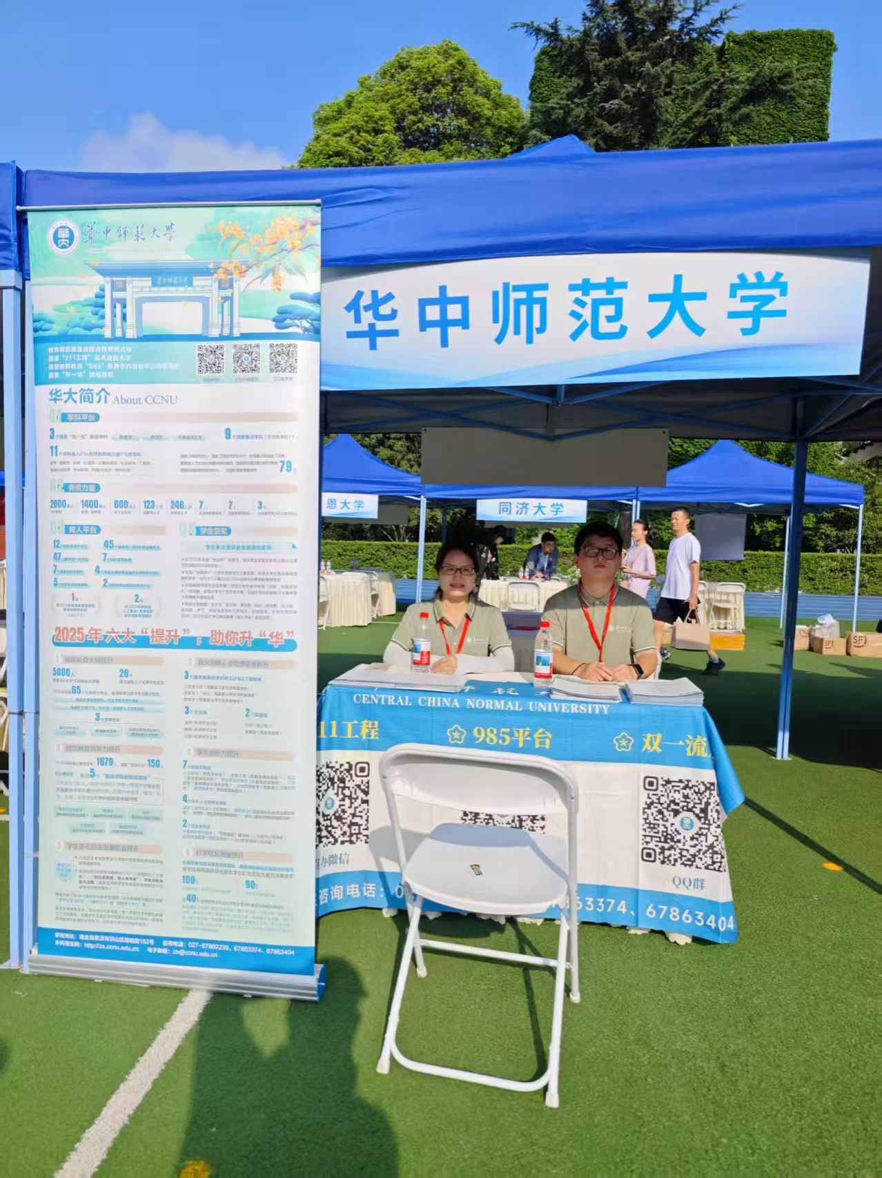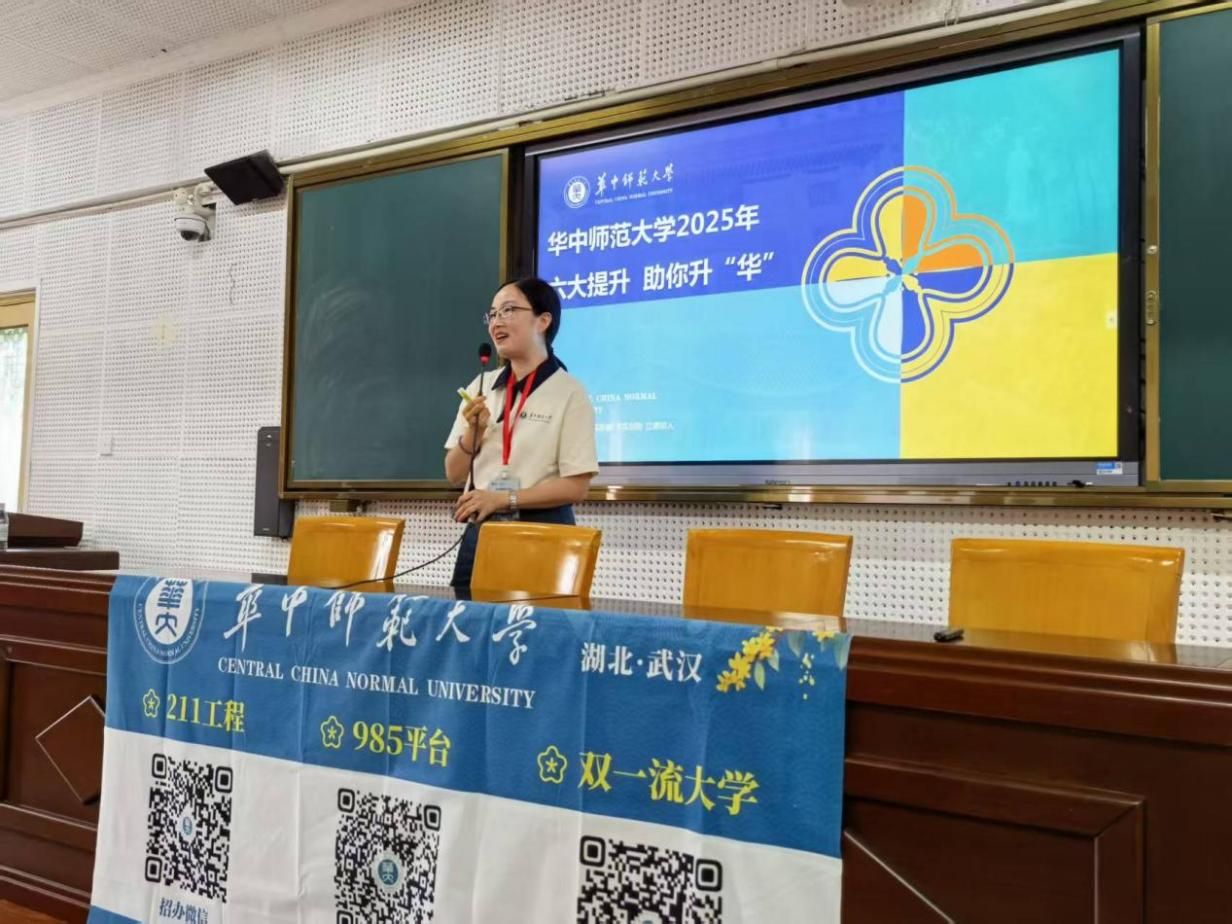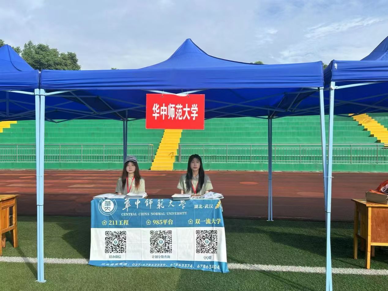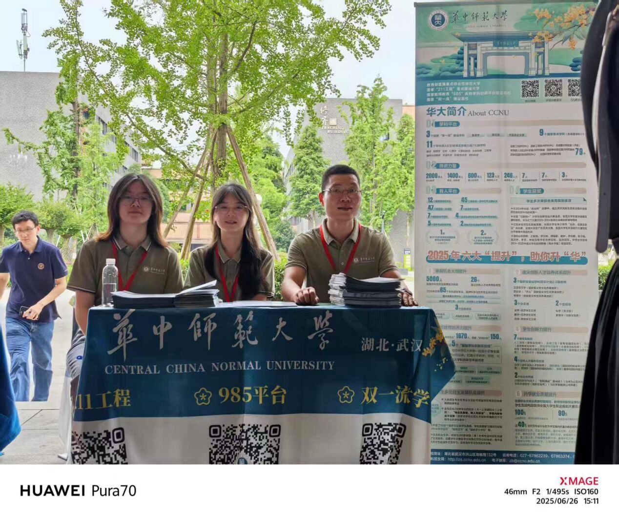 马克思主义学院讯(通讯员 毛凰瀛 陈雨菲;摄影 毛凰瀛 陈雨菲)6月22日至28日,为精准对接优质生源,深入解读招生政策,并为广大考生和家长提供了全面且专业的报考指导,由学院院长毛华兵带队、学院师生40余人组成的工作组奔赴四川成都、绵阳、南充、泸州、攀枝花、内江、自贡、眉山、宜宾、达州、德阳等11个地市,在20余所重点中学开展招生宣传活动。华中师范大学四川校友会会长王洪知、秘书长丁周、副秘书长徐江梅亲自到场支持。