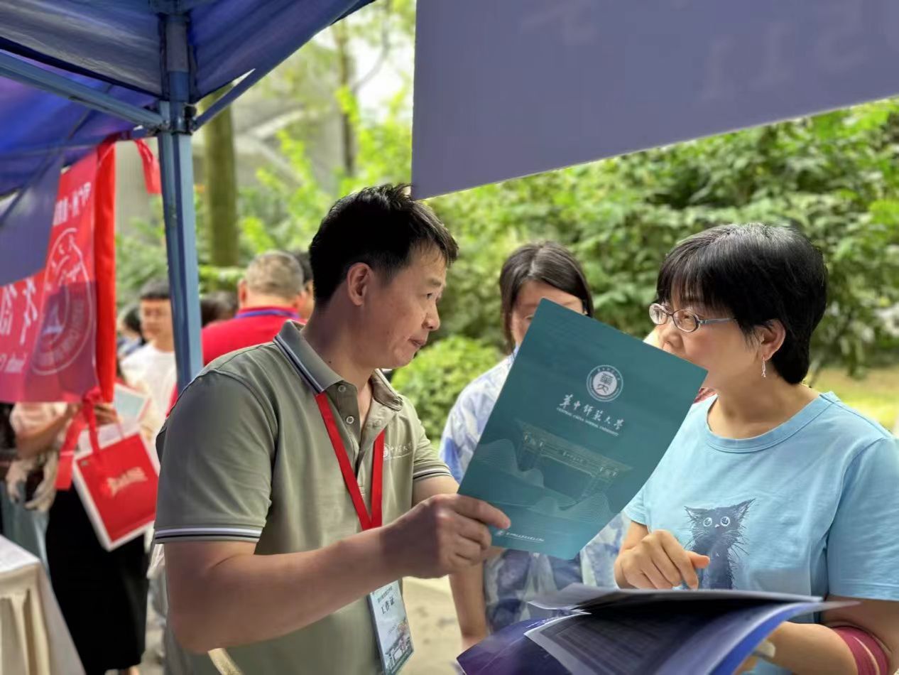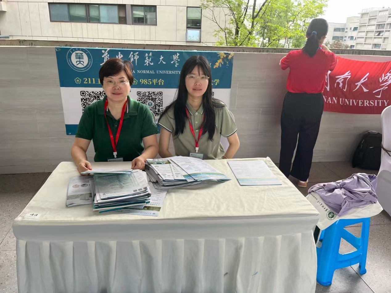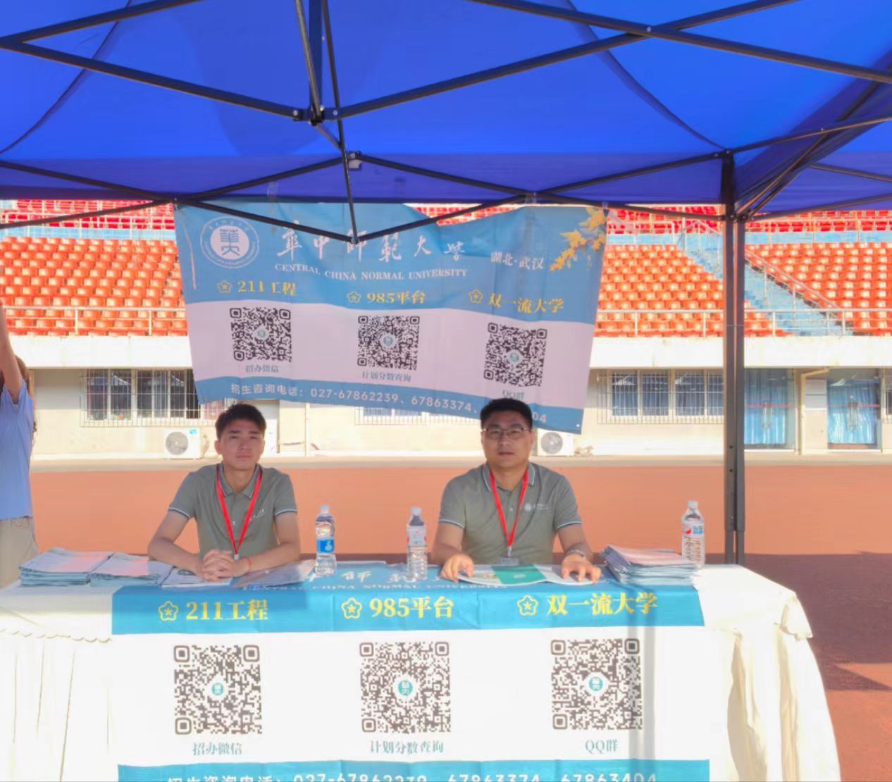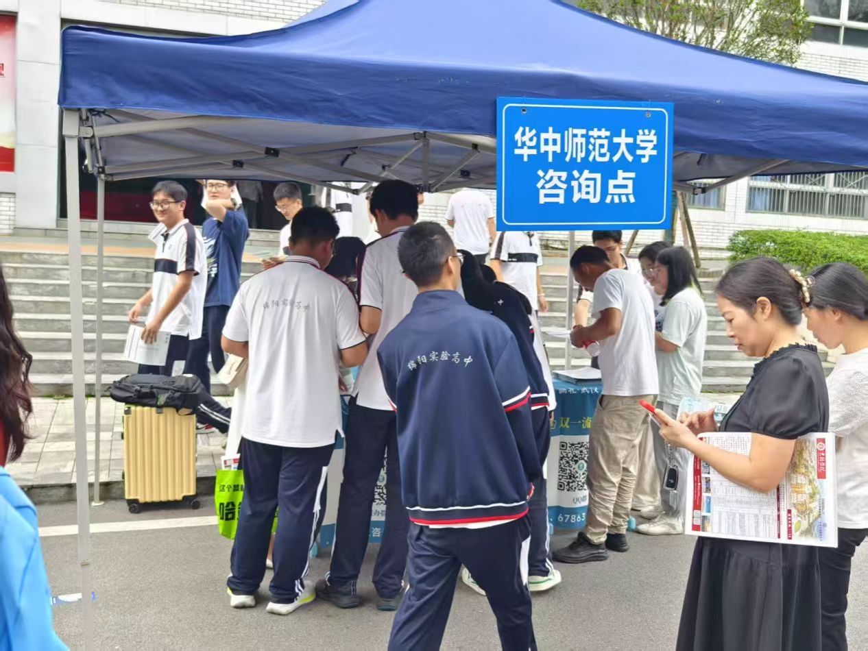 马克思主义学院讯(通讯员 毛凰瀛 陈雨菲;摄影 毛凰瀛 陈雨菲)6月22日至28日,为精准对接优质生源,深入解读招生政策,并为广大考生和家长提供了全面且专业的报考指导,由学院院长毛华兵带队、学院师生40余人组成的工作组奔赴四川成都、绵阳、南充、泸州、攀枝花、内江、自贡、眉山、宜宾、达州、德阳等11个地市,在20余所重点中学开展招生宣传活动。华中师范大学四川校友会会长王洪知、秘书长丁周、副秘书长徐江梅亲自到场支持。