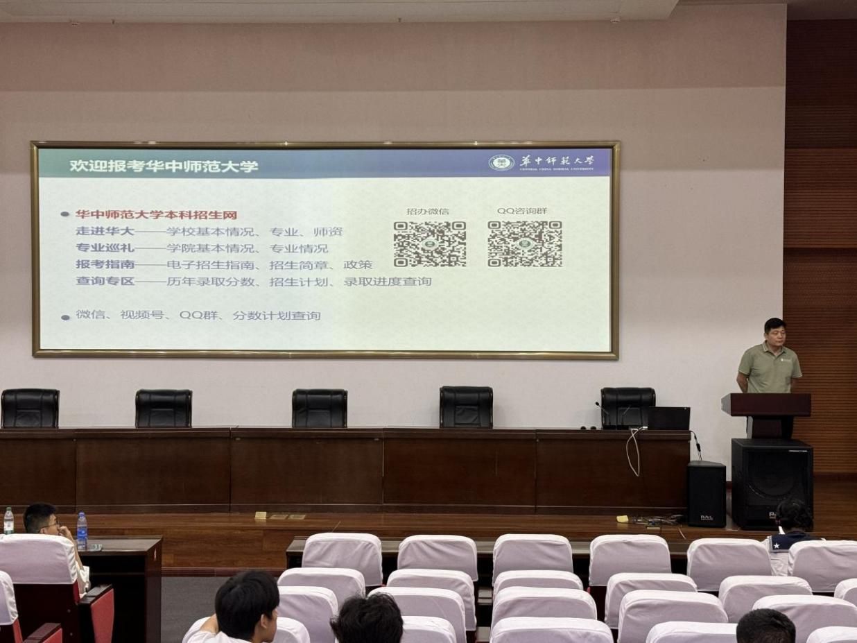 6月26日上午,学院院长毛华兵、副院长邵彦涛到成都市新都一中开展高招宣讲。面向新都一中考生家长,毛华兵院长全面宣讲了华中师范大学2025年本科招生的六大亮点,并结合在川招生情况介绍了2025年招生报考指南。宣讲后,与会考生家长提出了一系列问题,毛华兵院长、邵彦涛副院长一一做了精准解答。