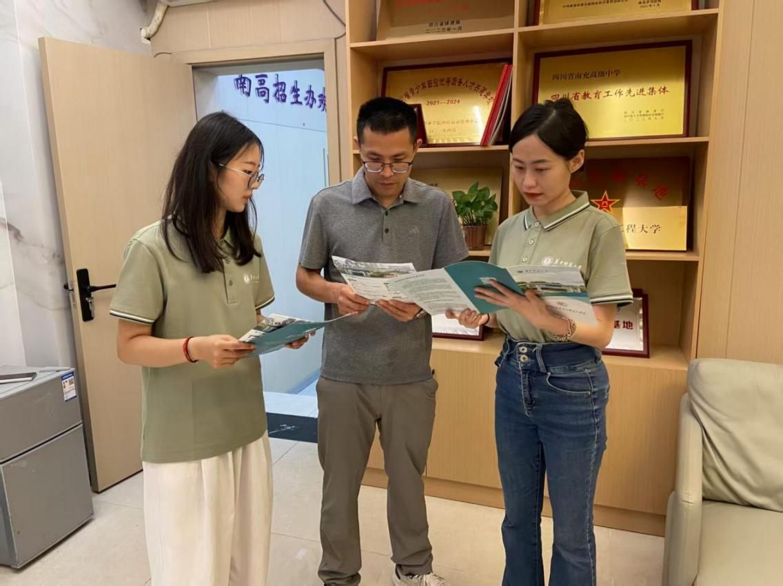 6月27日,学院团委书记李欣老师带队的南充组工作人员,到南充高级中学招生办与考生家长面对面沟通,宣传我校招生亮点和政策。